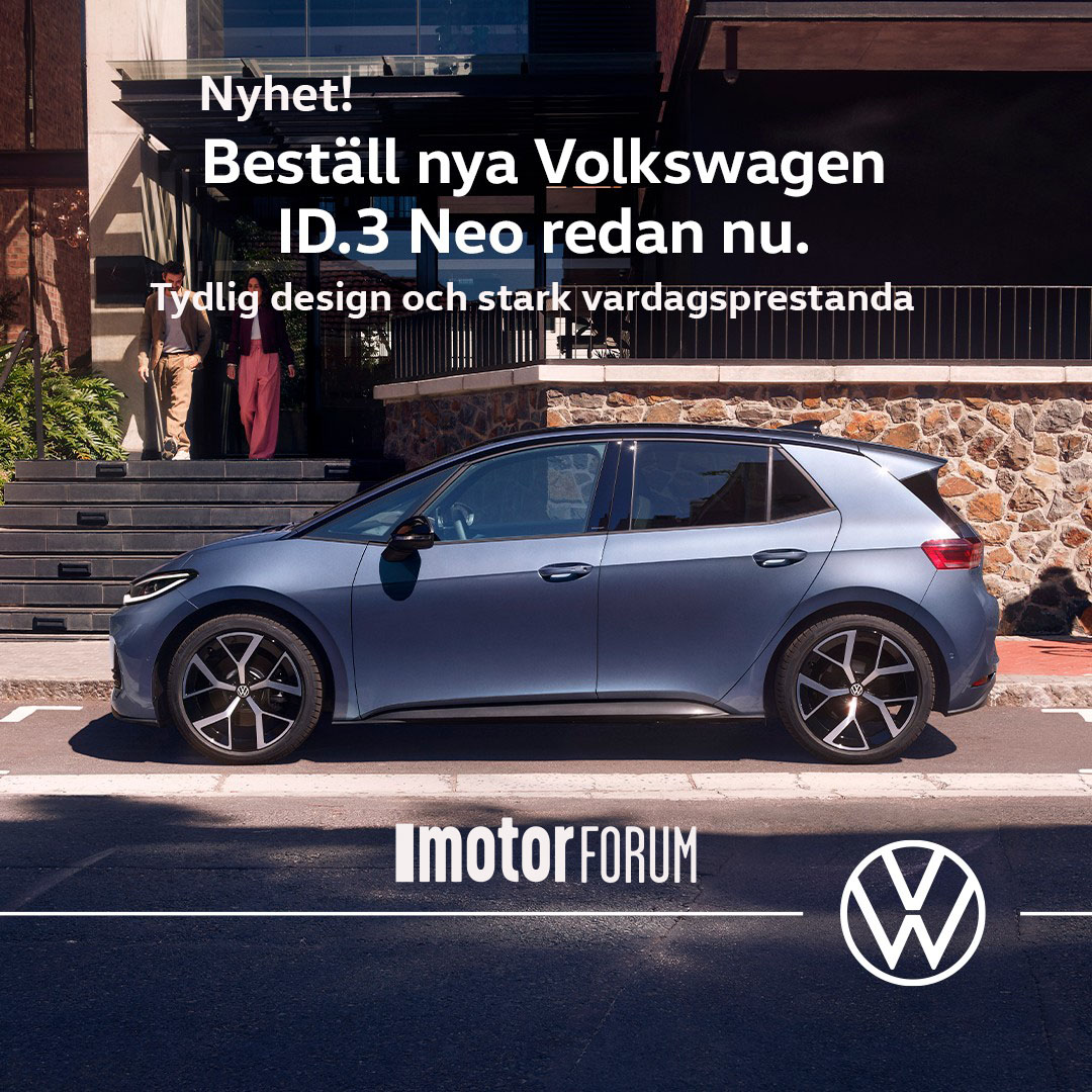 Den nya ID.3 Neo kommer senare i år men går redan nu att beställa. Den utstrålar ID. modellernas designstil - modern, tydlig och självsäker. Den kraftfulla eldriften, den långa räckvidden och den snabba laddningsförmågan gör körningen enkel och avslappnad.